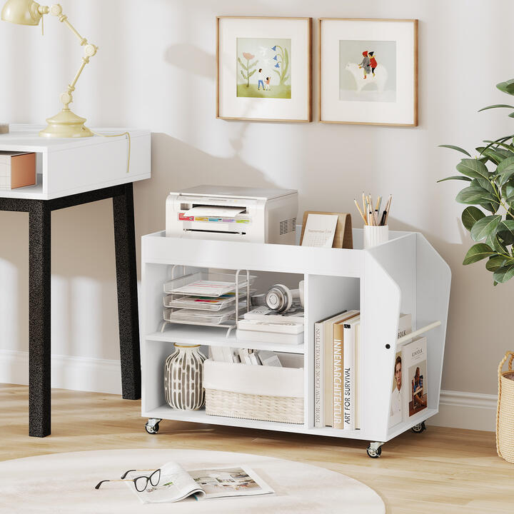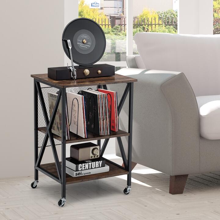 Costway3-tier Rolling Stand with 3 Dividers and Steel Frame for Living Room/Office
