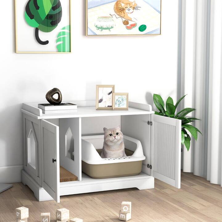 CostwayCat Litter Box Enclosure with Cat Scratching Pad for Pet