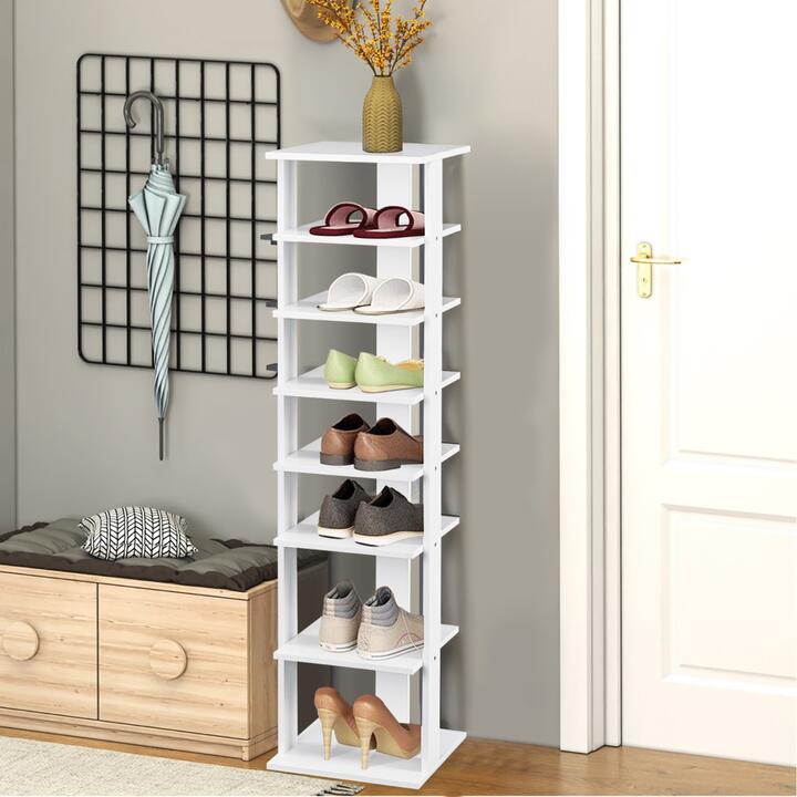 CostwayWooden Shoe Rack with 8 Levels and Large Capacity for Entry/Living Room-White