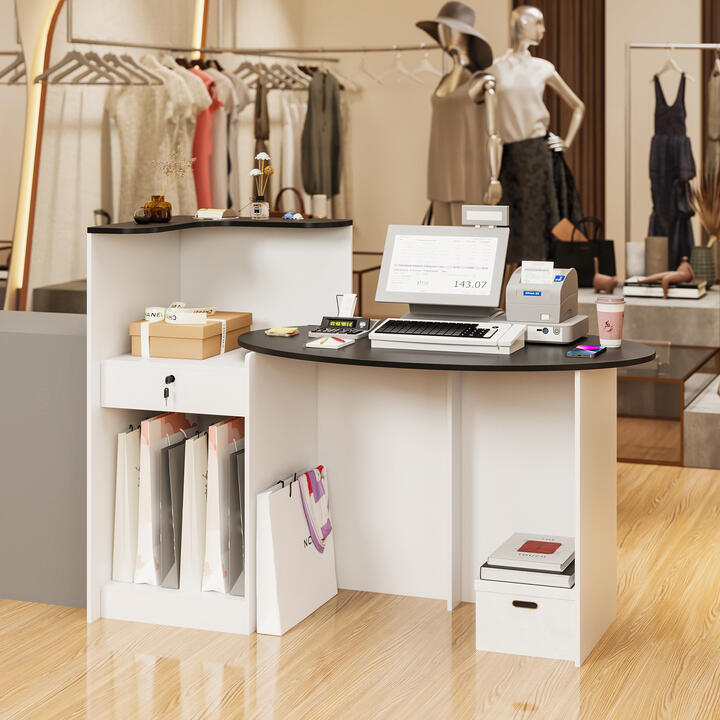 CostwayModern Reception Desk Front Counter Desk Retail Register Stand -Black