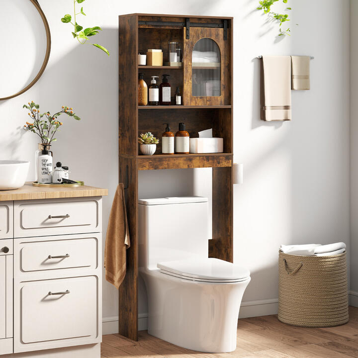 Costway170 cm Farmhouse Bathroom Over the Toilet Storage Cabinet-Rustic Brown