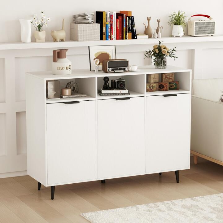 CostwaySideboard Buffet Cabinet with 5-Position Adjustable Shelves and 3 Open Compartments-White
