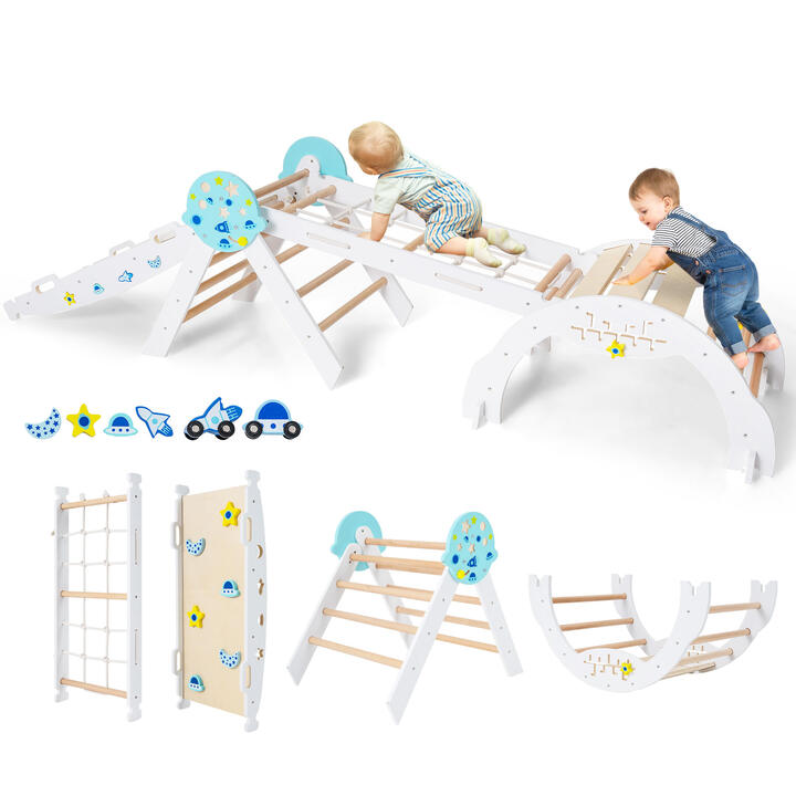 Costway7-in-1 Wood Triangle Climbing Toys for Toddlers-White