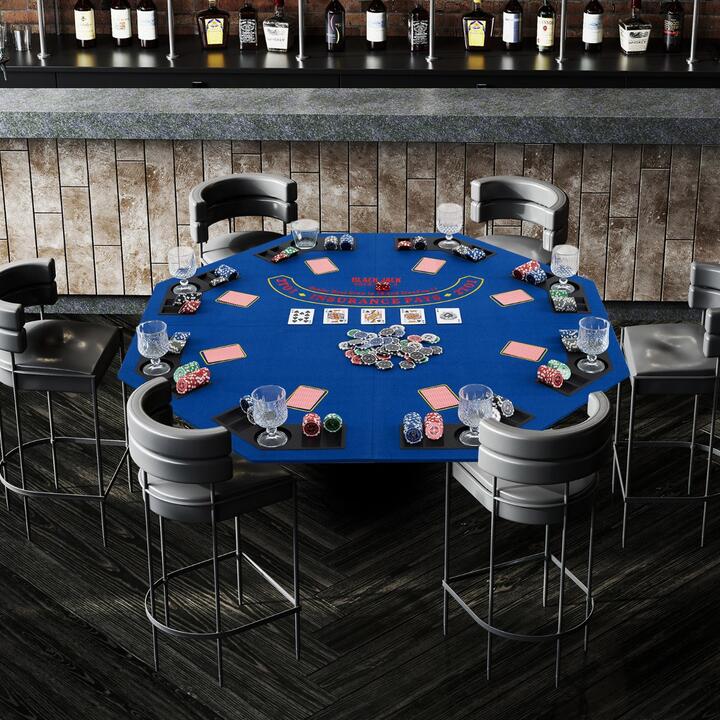Costway122cm Foldable Poker Table for 8 Players with Padded Rails-Blue