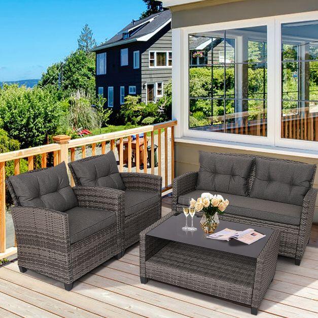 Costway4 Pieces Wicker Patio Furniture Set with Quick-Drying Foam