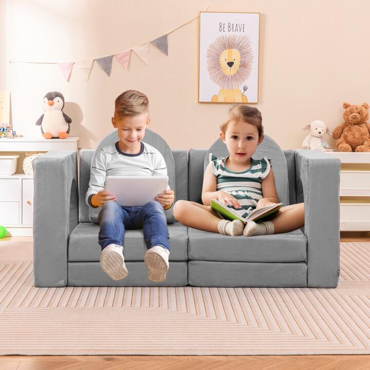 Costway8-Piece Modular Kids Sofa Play Couch Climb Playset with Covers-Grey