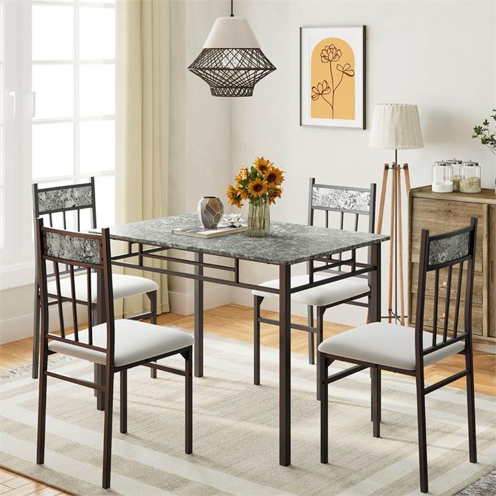 Costway5-Piece Dining Table Set for 4 with Kitchen Table and 4 Chairs-Grey