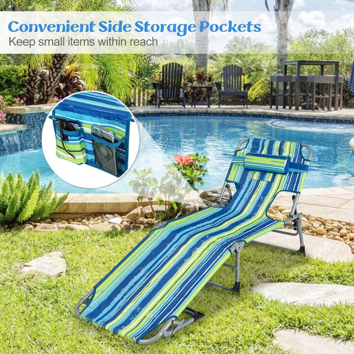 CostwayFolding Beach Lounge Chair with Pillow for Outdoor-Blue & Green