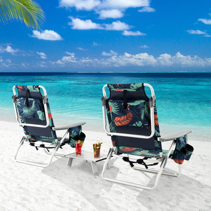 CostwayPortable Camping Chairs with 5 Adjustable Positions for Lawn/Poolside-Navy