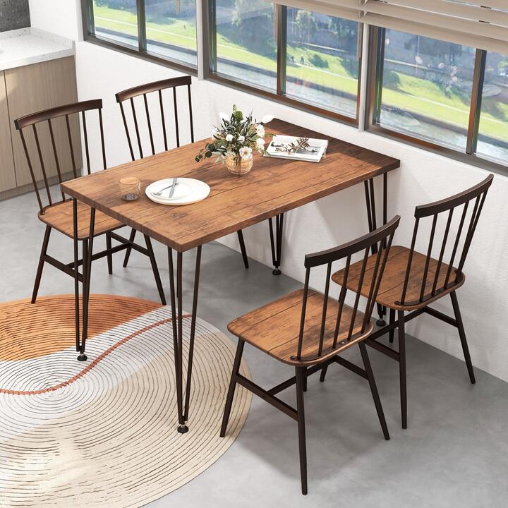 CostwayModern 5-Piece Kitchen Table and Chairs Set with Backrest and Metal Frame-Brown