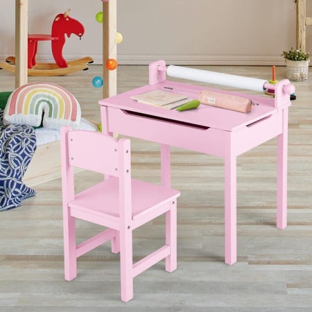 • CostwayKids Sensory Table Set with Storage and Paper Roll Holder for Drawing Studying Playing-Pink