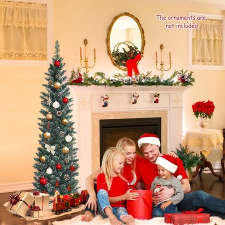 • Costway1.5M Artificial Slim Pencil Christmas Tree with Pine Cones
