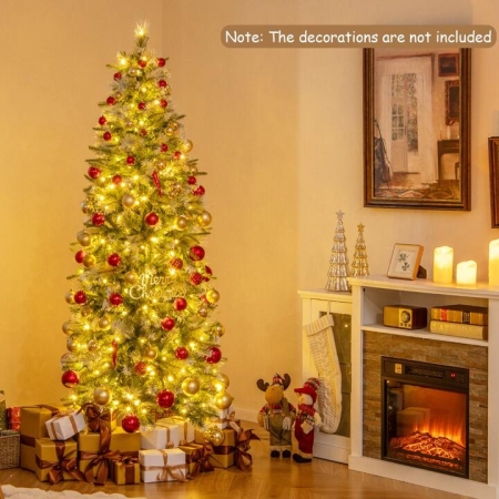 • CostwayPre Lit Snowy Slim Snow Flocked Christmas Tree for Home Decoration