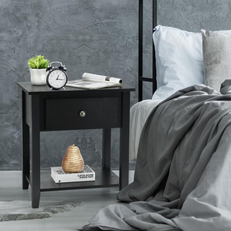 • CostwayBedside Tables with Drawer and Storing Shelf for Bedroom/Living Room/Bathroom/Office-Black-2 pieces