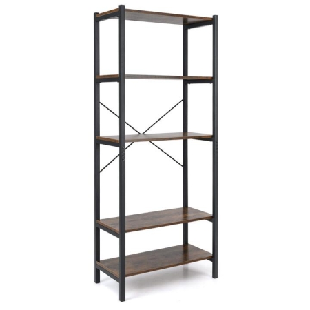 • Costway5-Tier Bookshelf Bookcase with Metal Frame and Dual Anti-Tipping Kits-Rustic Brown