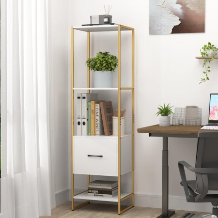 • Costway5-Tier Bookshelf with Drawer and Shelves for Bedroom Living Room-White