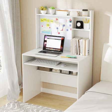 • CostwayComputer Desk with Magnetic Bulletin Board and Adjustable Shelf-White