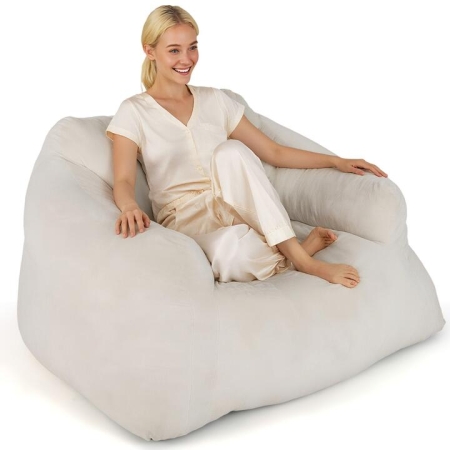 • CostwayBean Bag Chair Plush Lazy Sofa with Ultra-soft Velvet Cover-Beige