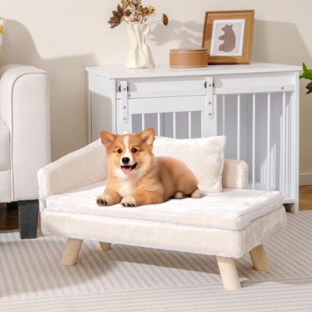 • CostwayDog Sofa Bed with Removable Cozy Padded Pad and Pillow-White