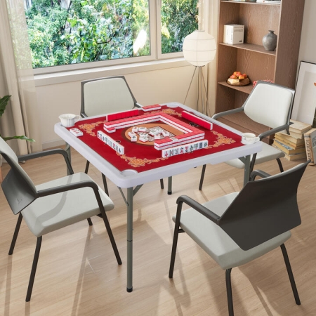• Costway90cm Folding Mahjong Table Portable with Felt Mat-Red