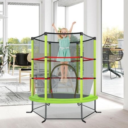 • CostwayMini Kids Trampoline with Enclosure Net for Family Games Green