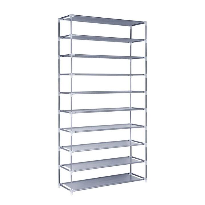 Your current shoe rack doesn't have enough space? Are your shoes scattering over the entrance? It's time to get a shoe rack that can accommodate all these shoe of yours! Keep it all tidy, easy to look for when you need the right one! This shoe rack allows you to remove some tiers when you need to put tall boots or shoe boxes. With its stackable design, you can easily place them at different areas of your house. Convenient to use and with non-woven fabric, start your day by finding the right pair of shoe. Purchase now and have it delivered to your doorstep. No pick up and transporting, easy to assemble; ready to use in minutes! WARNING Children have died from furniture tipover. ALWAYS secure this furniture with an anchor device. NEVER allow children to stand, climb or hang on drawers, doors, or shelves. Features 10 tier shoe rack Hold up to 50 pair of shoes Sturdy metal frame Non-woven fabric Stackable design Excellent weight capacity Easy to set up Fits most shoe types Specifications: Material: Metal frame, non-woven fabric, plastic connector Overall dimension: 85 x 26 x 160cm Height of each tier: 16cm Colour: Silver Assembly required: Yes Number of packages: 1 Package Content 10 Tier Shoe Rack x 1 Assembly Manual x 1 This product comes with 1 year warranty. Note:- Actual product colours may vary due to lighting, studio photography, room conditions, different screens on various devices. – All our furniture product are flat pack (assembly required) for safe handling purposes.