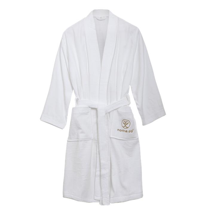 Keep your kids warm and cosy with our 100% cotton nontre.co robe. Lightweight and featuring our signature logo, these comfy robes are perfect for kids to wrap themselves in after the bath or shower. Features: Tie around the belt for closure Two pockets 100% Cotton Available in the below sizes (Length / Chest / Sleeve): M – 69 cm x 35 cm x 42 cm L – 102.5cm x 58cm x 49.5cm Care instructions: Machine washable – we recommend washing your robe on a normal cycle in warm or cold water. Our Enhanced Signature Laundry Concentrate is perfect for washing cotton and linen. *Please note sizes run small. Check measurements above for your best fit. Specifications Material: 100% Cotton Colour: White with gold embossed logo