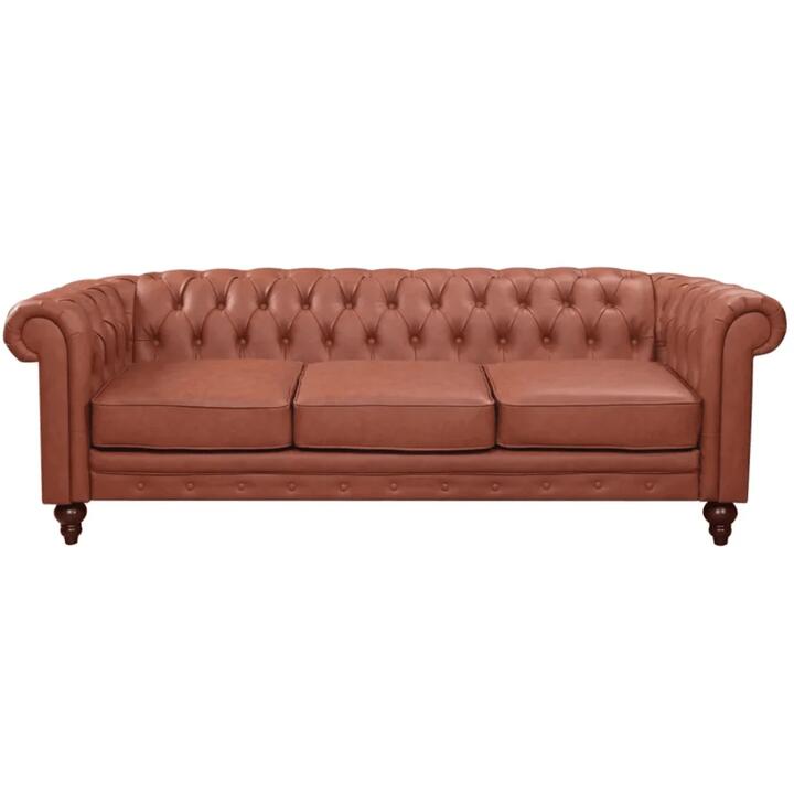 Luxurious Sofa The curved silhouette of this sofa makes it one stand out from its contemporary. Designed with style and comfort in mind, the rolled arms and Rubber wood legs give this sofa a smart look, while the quilted seats with plump cushioning gives it a royal touch. , Premium Upholstery & Soft and Sleek This sofa set is completely upholstered with premium quality PU Leather. This super soft and sleek sofa comes with finely decorated cushion for back rest with deep quilting and PU Leather covered buttons. Inside the upholstery, there is high-density foam to ensure superior comfort. Wide Armrest Its wide, rolled and comfortable armrests provide added arm support. Once rest your arm on this stylish wide armrest, you will feel the smooth touch of premium bonded leather and drift in relaxation. Firm Support Comes to you in best quality rubber wood legs which make the sofa strong and sturdy. Its shape, colour and silhouette offer an aesthetic look to your living room. Key Features:, The Chesterfield Style and Curved Silhouette Make it a Statement Piece of Furniture , Upholstered in Premium Leatherette, High Density Foam to give Comfort and Support, Sturdy Construction with Solid Wood Structure, Firm Support with Rubber Wood Legs , Leg Assembly is Required, Easy Home Assembly Needed (Requires No Tool) , Smart Packaging to Ensure Safe delivery, Product Specification:, Product Dimension: L-232.5 x W-93.3 x H-76.2cm, Seat Height: 45cm, Product Weight: 73.4kg, Box Dimensions (cm): Box 1: L-93 X W-45 X H-64 Box 2: L-183 X W-65 X H-55, Box Weight (kg): Box 1: 23.3, Box 2: 59.2, Packaging Type: Knock Down, Images are for illustration purposes only. The colours may slightly vary from actual product. Free Shipping offer is applicable to VIC, NSW, QLD, ACT & SA Metro area only, additional shipping fee is required for delivery outside this area. Note:- Actual product colours may vary due to lighting, studio photography, room conditions, different screens on various devices. – All our furniture product are flat pack (assembly required) for safe handling purposes.