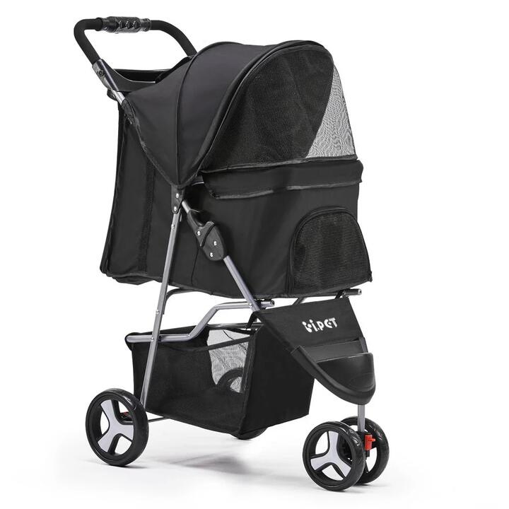 Need to take your small pet out for a walk with minimum hassle? You can, with the i.Pet Pet Stroller. It is sturdy, well-made, comfortable and comes with a host of pet-friendly features. Such as multiple mesh screens with zippers for easy access and breathability, a bottler holder for refreshment, spacious storage, durable fabric, and omni-directional front wheels and brake-fitted rear wheels for easy handling. Better still, the stroller can opened and kept with a simple one-step fold operation and easily washable. In short, the i.Pet Pet Stroller is one adorable ride for your precious pet. Features:, One-step fold, Catch hook, Adjustable front veil, Large space basket, Anti-slip foam handle, 360° rotatable front wheels, Rear wheels with damping, Wear-resistant EVA wheels, 600D Oxford Fabric and nylon base, Machine washable and detachable insert, Rear brakes, Double clasps, Bottle holder, Waterproof, Removable cushion, Assembly required: Yes, No. of package: 1, Specifications:, Frame material: Steels, Tube thickness: 0.7 mm, Surface coating craft: Powder-coated, Fabric material: 600D Oxford, Wheels material: EVA, Front wheel size: 6", Rear wheel size: 7", Product overall size: 67cm(L) x 47cm(W) x 100cm(H), Pet cage size: 55cm(L) x 35cm(W) x 55 cm(H), Storage basket size: 30cm(L) x 30cm(W) x 20cm(H), Pet cage weight capacity: 15kg, Storage basket load capacity: 3kg, Frame colour : Silver, Type: three-wheel, Color: Black, Product Contents:, i.Pet Stroller x1, Manual x1. Note:- Actual product colours may vary due to lighting, studio photography, room conditions, different screens on various devices.