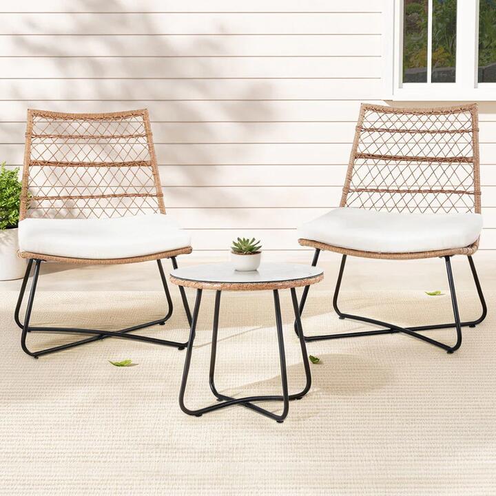 For relaxing afternoons outdoors, you can't go past the Gardeon Outdoor Bistro Set. The set comes with two chairs and a table for a comfortable, intimate setting. Crafted with a sturdy steel frame with a durable powder coating and woven PE rattan, the set is breathable, lightweight, and effortlessly stylish. The table features a generous tempered glass tabletop to hold all your afternoon tea essentials. Designed to withstand various weather conditions, our bistro set is weather-resistant, ensuring its longevity. The non-slip feet provide stability and safety, while the inclined backrest helps you relax at the right angle. Easy assembly makes it convenient for you to enjoy your new furniture in no time. Upgrade your space with this stylish and functional Gardeon Outdoor Bistro Set today. Features Suitable for outdoor and indoor use Durable powder coating Sturdy steel frame Weather-resistant Non-slip feet Easy assembly Specifications: Material: Steel, PE rattan Chair dimensions: 60 x 56 x 84cm Table dimensions: 50 x 50 x 47cm Colour: Brown Package Content Gardeon outdoor chairs X2 Gardeon Table X1 Installation manual X1 This product comes with 1 year warranty. Note:- Actual product colours may vary due to lighting, studio photography, room conditions, different screens on various devices. – All our furniture product are flat pack (assembly required) for safe handling purposes.