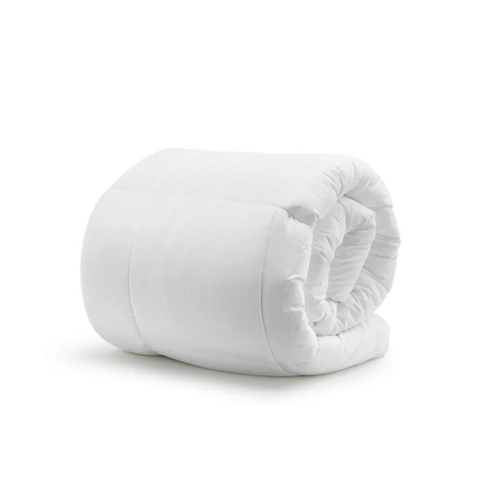 Stretch out and sink into a luxuriously deep sleep with the help of this ultra-soft and breathable All Seasons Bamboo Blend Quilt. Premium Bamboo and Microfiber filling. (50% Bamboo and 50% Microfiber), Moisture-wicking and thermo-regulating properties, Baffle-box construction with double-stitched hem finish, Ultra-soft microfiber weave cover, Up to 3x more absorbency than cotton, Odour-free, hypoallergenic and antibacterial, Wrap yourself in the 50-50 blend of natural bamboo fibres and premium quality microfibre All Seasons Bamboo Blend Quilt for year-round comfort – ideal for hot sleepers, stifling nights in summer and chilly nights in winter. Baffle-box construction, Made with a durable baffle-box design, each square pocket is separated by a thin strip of fabric and filled with the same amount of down to ensure maximum loft and a fluffy, airy duvet for luxuriously soft and temperature-regulated sleep. Benefits of bamboo bedding, Bamboo fibres are extremely light and breathable, resulting in a fabric that keeps you cool and comfortable even on those stifling summer nights. With anti-microbial properties, bamboo is naturally resistant to dust mites and mould, giving you a fresh, clean place to rest your head. Sleep easy, Boasting three times more moisture absorbency than natural cotton, this set helps to effortlessly wick away moisture, while the hypoallergenic and antibacterial properties are ideal for helping to keep asthma and allergies at bay. Dimension : H 245 x W 210cm. Note:- Actual product colours may vary due to lighting, studio photography, room conditions, different screens on various devices.