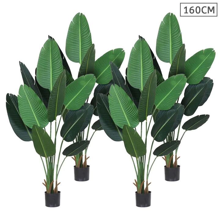 Features:, Artificial Plant is a perfect addition to any indoor and outdoor decor. Realistic, no maintenance or watering needed, natural trunks make the plant highly realistic. It has a clear texture and vivid color on the leaves. The simulated moss in the flowerpot makes it look more realistic and beautiful. A long-term replacement to the real plant since it will never wither, Strong decorative effect to different environments, A perfect addition to your home or office decoration. Can improve the overall decor in stairs, balconies, kitchens, lofts, restaurants, tea houses, beauty salons, hotels, internet cafes, weddings, photography, photo studios, etc. Specifications:, Size: 160cm, Leaves quantity: 10pcs, Carton box size: 168*20*19.5, Usage:, Home and Office Decoration, Package Includes:, 4 X Traveler Banana Artificial Plant. Note:- Actual product colours may vary due to lighting, studio photography, room conditions, different screens on various devices.