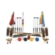The 6 Player Championship Croquet Set The Championship Croquet Set is a top quality croquet set for those wanting the best quality and or square mallet heads. The Championship Croquet Set is a beautifully-crafted, durable set constructed of the highest quality materials. It is supplied with 2 different sized mallets (Rosewood square heads with brass protection) to enable players of different heights to play with a suitably sized mallet. The Championship Croquet Set is also supplied with exceptionally solid club style steel hoops with stability carrots and composite croquet balls. Composite croquet balls offer more durability than the traditional wooden croquet balls. The Championship croquet set includes:6 Square head Rosewood mallets with brass protection and octagonal English Ash handles – approximately 3lbs each- 3 x 97cm (38 Inch) Mallet with 24cm (9 1/2 Inch) x 6cm (2 1/4 Inch) Rosewood Head with leather-bound handles – 3 x 87cm (34 Inch) Mallet with 24cm (9 1/2 Inch) x 6cm (2 1/4 Inch) Rosewood Head with leather-bound handles6 16oz composite balls 9cm (3 5/8 Inch) in diameter6 Steel professional hoops with carrot (16mm diameter) 51cm (20 Inch) high, 10cm (4 Inch) wide, dipped to 21cm (8 Inch) to leave regulation 30cm (12 Inch) above ground1 Hoop smasher mallet with rubber head (important as the rubber protects the hoops)4 Corner flags with metal poles6 Coloured croquet clips1 Hardwood Centre peg with topper – – 3cm (1 ½ Inch) diameter, 56cm (22 Inch) high.1 Hoop Drill (to create the carrot holes for the club hoops)We offer a choice of Nylon bag, Tool kit bag, Wooden trolley or wooden box or as desired. Please note that the wooden trolley is supplied flat packed.