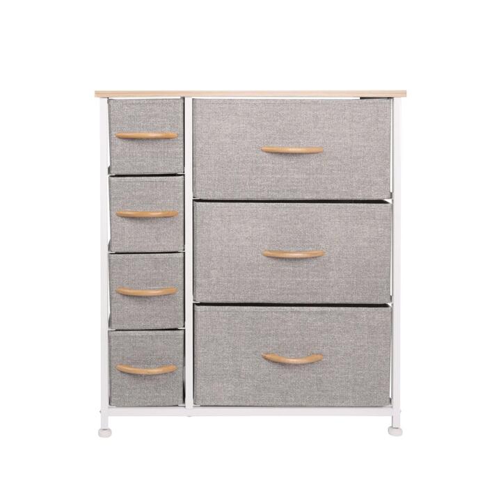 Hide away household clutter with this handy storage chest that offers ample space to store everything from documents, cords and stationary to other belongings for a neat and tidy home. Contemporary storage chest, 3 Large and 4 small-sized drawers, Solid surface tabletop, Lightweight and easy to move, Sturdy structure, Easy to assemble, Give your home interior an instant update thanks to the 7 Drawer Storage Chest that holds everyday essentials and other common household items with modern style. Space for storage, From clothing and accessories to paperwork and cables, the three large and four small-sized pull-out drawers are perfect for packing away any household items to maximise space anywhere around the house and keep it neat and organised. Simple style update, The simple silhouette is paired with a neutral colour palette that complements existing decor while bringing a touch of contemporary charm to the interior of any home. Dimension: W 63.5 x D 30 x H 73 cm. Note:- Actual product colours may vary due to lighting, studio photography, room conditions, different screens on various devices. – All our furniture product are flat pack (assembly required) for safe handling purposes.
