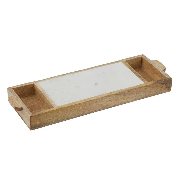 Perfect for serving a variety of delicious nibbles when entertaining! Features • Deep compartments on either side are great for crackers and wafers. • Features handles for ease of transport. • Constructed from marble and mango wood for exceptional durability and strength. What Am I Buying 1 x Caddy Materials Mango Wood and Marble Dimensions 46 x 45 x 4cm