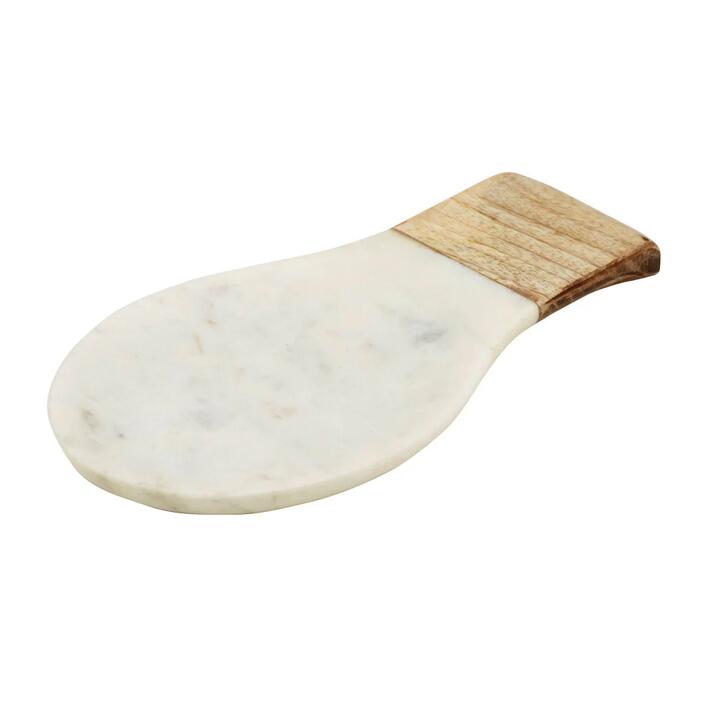 Prevent those drips on your benchtop! Rest your spoon on this when cooking or preparing runny foods like sauces, soups, or dressings that require stirring periodically. Features • Classic white and natural colourway complements any space. What Am I Buying 1 x Spoon Rest Materials Mango Wood and Marble Dimensions 20 x 11cm