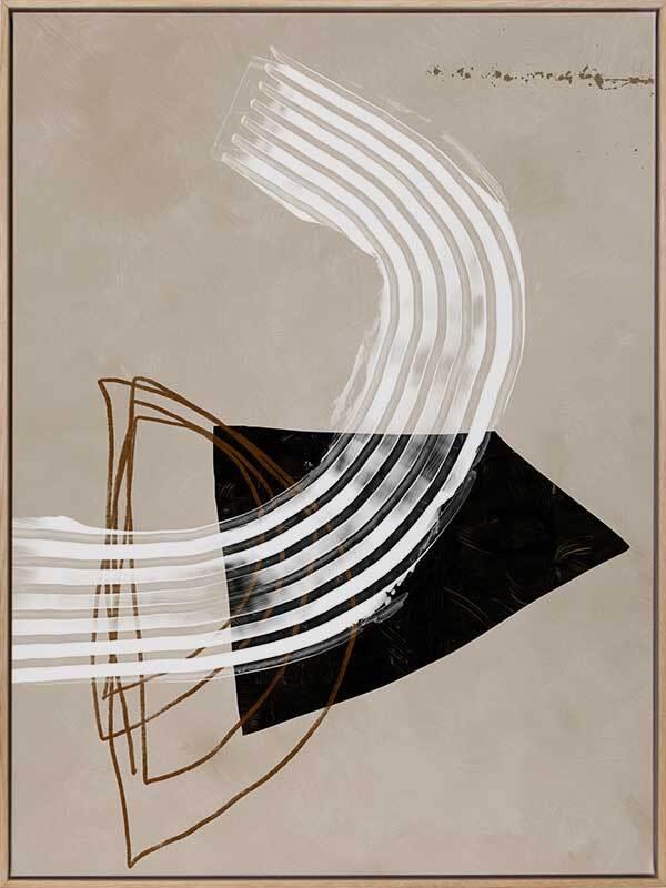 Act Natural II Canvas Art Print: A neutral-toned abstract artwork that features a textured beige background with black and white shapes and patterns overlaying it. Pairs with Act Natural I. 2019 SPRING/SUMMER COLLECTION: SOLSTICE Disclaimer: Colours of Urban Road products may vary due to device display differences, monitor settings, inherent product variations, lighting conditions, and screen calibration. While we strive for accuracy, slight variations may occur. For any concerns, contact our customer support. Your satisfaction is our priority. STRETCHED CANVAS Urban Road's stretched canvas fine art prints are professionally printed on polycotton artist canvas, using archival inks and then stretched and gallery wrapped. This means the image is stretched around a 38mm frame to create a seamless, museum-quality finish. All stretched and box framed art prints arrive ready to hang. SHADOW BOX FRAMES We also offer the option to add a shadow box frame to your Urban Road canvas art print. A little different from a traditional framed print, the canvas sits within the box frame with a 5mm gap, creating a sophisticated shadow effect between the frame and the canvas. Our solid timber box frame mouldings are 10mm wide, and 55mm deep, and add approximately 40mm to the length and height of the listed canvas size. ROLLED CANVAS ART At Urban Road, we also offer you the option to purchase your canvas art print unframed to allow you to have it framed your own way. As with our stretched and box framed canvas products, our rolled canvas prints are professionally printed on durable, museum-quality, matte coated polycotton canvas and made to order. Our rolled canvas products are printed to the listed stretched size, and come with an additional 45mm mirrored edge plus another 60mm white border to allow for gallery wrapping.