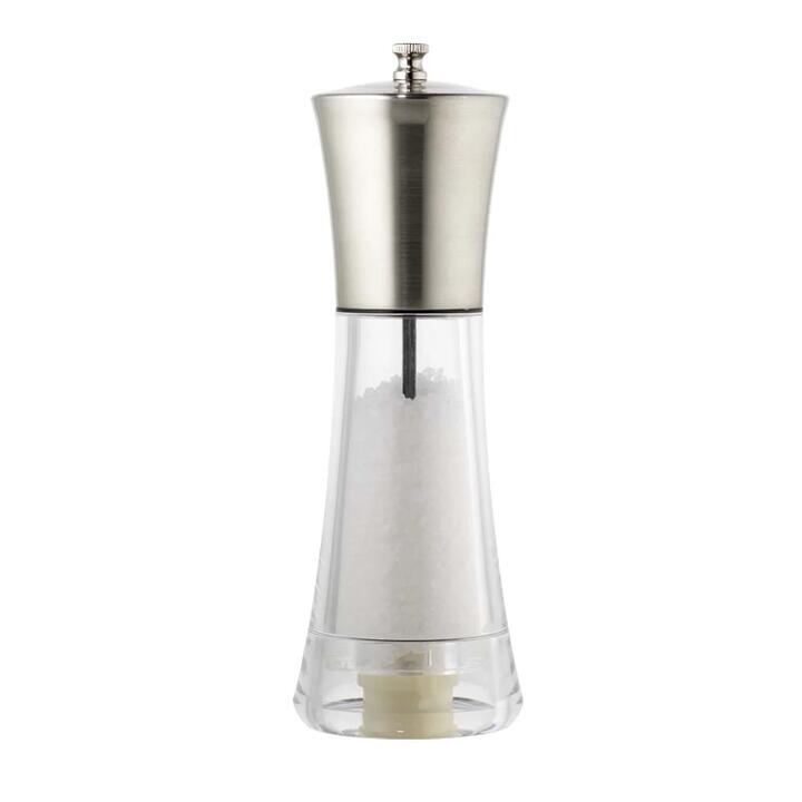 The intuitive, adjustable grinder system of the Alex Liddy Advance Salt Mill 21cm allows for a finer or coarser grind, giving you control over flavour delivery. The lid features a ceramic mechanism harder than steel, odourless, rust and corrosion resistant. With a universal grinding mechanism, the Alex Liddy Advance Salt Mill 21cm is suitable for rock salt or pepper corns. Hardened, chrome plated aluminium featured on the lid is crafted to last through many wash cycles, twists and falls. Alex Liddy Advance spice mills are synonymous with precision and reliability, ensuring your dishes are never short of flavour. With their sleek, contemporary silhouettes, each and every mill is designed for versatile, timeless elegance to suit any tabletop. FeaturesHardened, chrome plated aluminium crafted to last- Intuitive, adjustable grinder system allows for a finer or coarser grind- Ceramic mechanism is harder than steel, odourless, rust and corrosion resistant – Universal grinding mechanism suitable for rock salt or pepper corns- Contemporary design adds style and elegance to your tabletopDimensions7.5 x 22.8cm