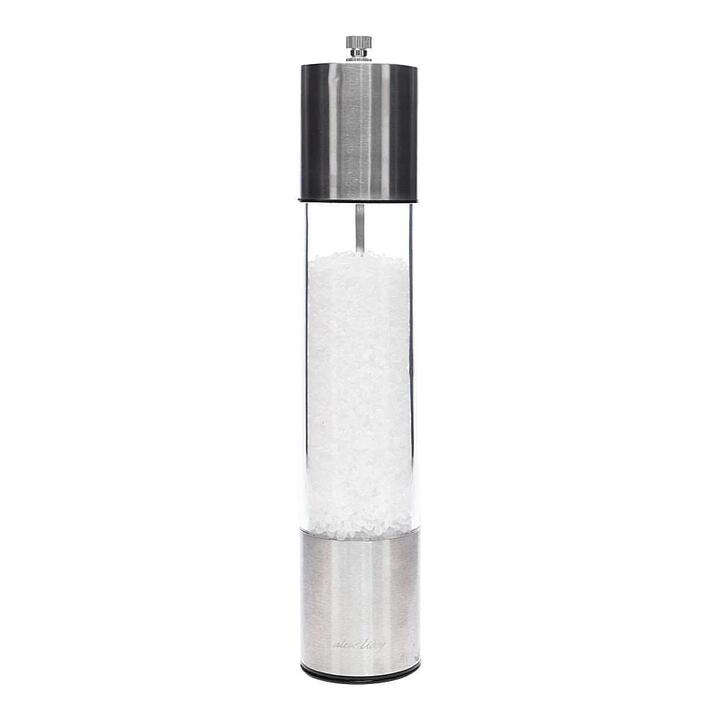 Season your homemade meals with the decadent Advance Stainless Steel Sea Salt Grinder by Alex Liddy!FeaturesAn elegant salt grinder, guaranteed to bring a touch of elegance to your dining décorComes pre-filled with sea salt The perfect way to dress up your dining table with functional and styilsh accessoriesMaterialStainless Steel & Acrylic