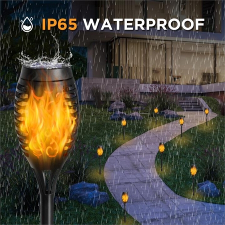 - Solar powered, no additional charging required. And this outdoor solar light has an auto on/off function, which can automatically charge during the day and light up automatically at night. IP65 waterproof, solar pathway light adapts to various rainy and snowy environments.