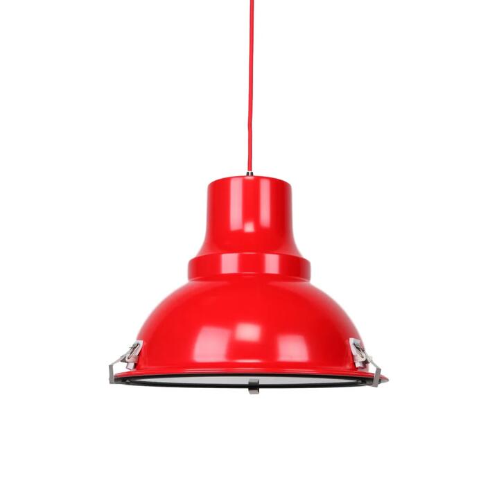 Illuminate a kitchen island or bar seating area with this bright design of this industrial classic pendant light. This simple yet classic dome shade pendant light boasts vibrant, aluminum finishes and is sure to add a modern, updated look to any home. Versatile and chic, this fixture is a great choice for traditional, beach, cottage, contemporary, or even modern farmhouse décor. Hang this classic dome fixture in multiples over a farmhouse kitchen island or cottage style breakfast nook table for a cozy kitchen lighting solution. Features:, 1 light cord drop 110cm adjustable, Colour: Flame Red (other colour choices also available), Metal, Globe: E27 1 x 40W (not included), Pendant Dimensions: 320mm H x 390mm W, LED globe compatible, Dimensions H 32 x W 39 X D 39 cm. Note:- Actual product colours may vary due to lighting, studio photography, room conditions, different screens on various devices.