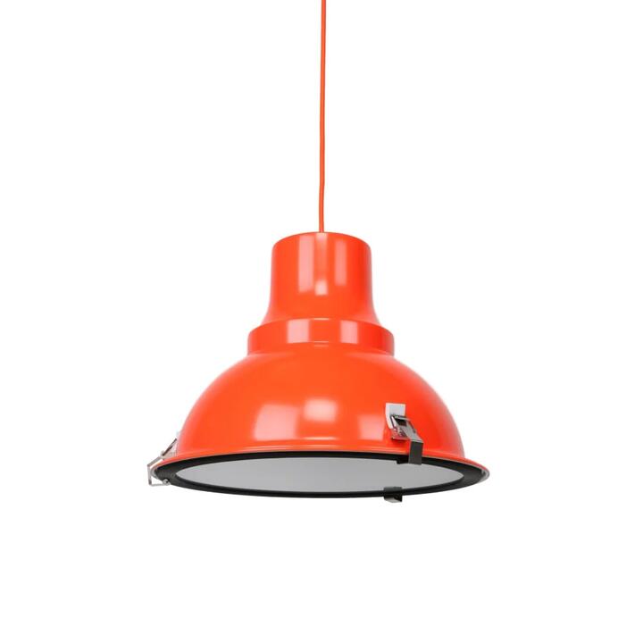 Illuminate a kitchen island or bar seating area with this bright design of this industrial classic pendant light. This simple yet classic dome shade pendant light boasts vibrant, aluminum finishes and is sure to add a modern, updated look to any home. Versatile and chic, this fixture is a great choice for traditional, beach, cottage, contemporary, or even modern farmhouse décor. Hang this classic dome fixture in multiples over a farmhouse kitchen island or cottage style breakfast nook table for a cozy kitchen lighting solution. Features:, 1 light cord drop 110cm adjustable, Colour: Orange (other colour choices also available), Metal, Globe: E27 1 x 40W (not included), Pendant Dimensions: 320mm H x 390mm W, LED globe compatible, Dimensions H 32 x W 39 X D 39 cm. Note:- Actual product colours may vary due to lighting, studio photography, room conditions, different screens on various devices.