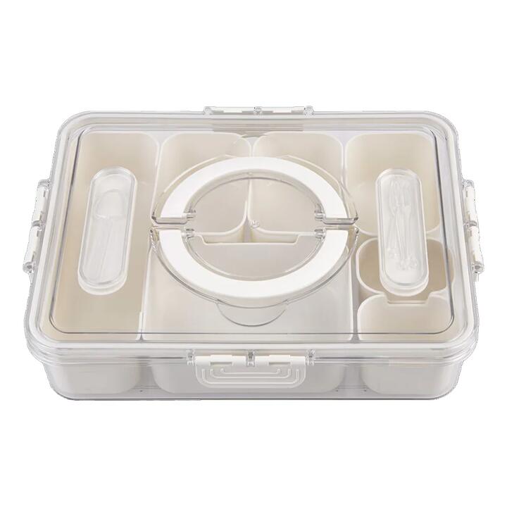 The pizzazz rectangular grazing box is a stylish way to serve and transport food, with seven removable compartments to keep cheeses, crackers, fruit and dips neatly separated. A secure clip-lock lid and fold-up handles make it easy to carry, while included food picks add convenience for effortless serving. Finished in an elegant cream colour, its ideal for picnics, parties and entertaining at home. Features• 7 removable compartments to separate & organise food • Clip-lock lid to keep contents secure • Strong carry handles for easy transport • Food picks included for convenient serving • Elegant cream colour for stylish presentation What Am I Buying 1 x Food container Materials Plastic
