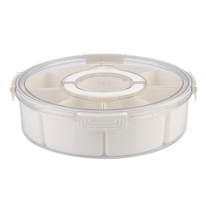 Serve and transport food in style with the pizzazz round grazing box. This entertainers essential features nine removable compartments to separate snacks, cheeses, fruit and more, a secure clip-lock lid to keep everything fresh, and sturdy carry handles for easy transport. Finished in an elegant cream colour, this grazing box makes entertaining at home, picnics or parties simple and stylish. Features• 9 removable compartments to separate & organise food • Clip-lock lid to keep contents secure • Strong carry handles for easy transport • Elegant cream colour for stylish presentation What Am I Buying 1 x Food container Materials Plastic