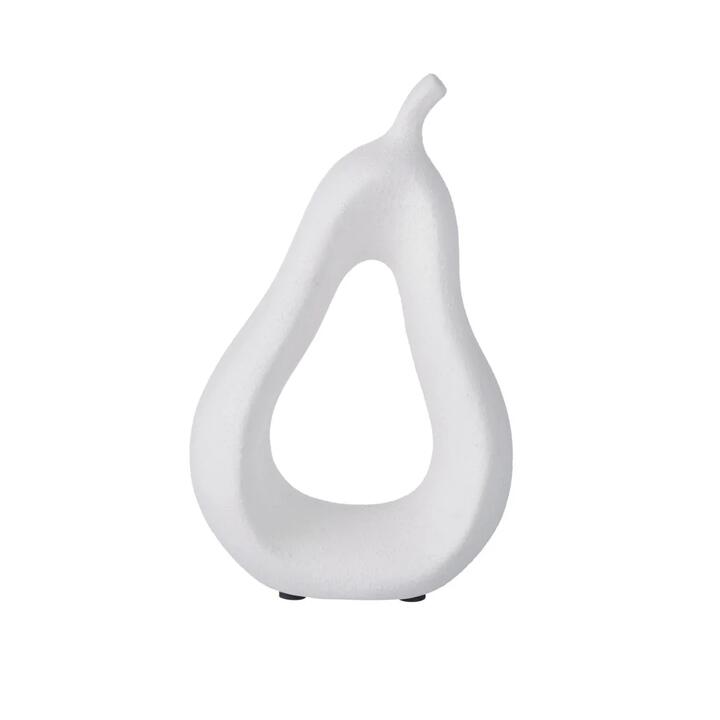 The Amalfi Pear Sculpture is the perfect accessory to enrich any corner of your home or office. Crafted from ceramic, the Pear is designed with a raw finish and a hole in the middle to make a bold visual impact. The neutral colour of the Amalfi Pear Sculpture means it will fit seamlessly into any interior space and the modern shape is suited to both contemporary and classic interiors. This decorative sculpture will become a practical statement item which will be enjoyed and admired in your home or office. Features Made from ceramic in a neutral colour palette Raw finish gives it an interesting texture and appearance Simple design means it will suits any home interior Pair with the Amalfi Pear Sculpture for a matching and coordinated set Display on a desk, coffee table, office shelf for a beautiful and elegant effect Wipe down with a damp cloth Dimensions 14x9x22cm