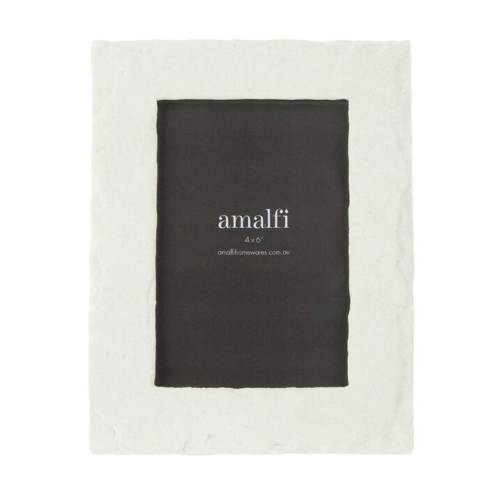 Amalfis beauty centres on its diversity – there are unique pieces to suit every taste. This Petra Photo Frame makes a perfect gift for a special friend or loved one. This frame is crafted from polyresin in a white stone powder finish with textured detailing. Features• Place on your desk, shelf or mantelpiece to display photos of your loved ones or treasured memories• This decorative photo frame boasts a contemporary stone look, perfect for adding a touch of modern elegance to your home decor• Available in 4×6 inch and 5×7 inch sizes – sold separatelyMaterialsPolyester, Stoneware, Glass