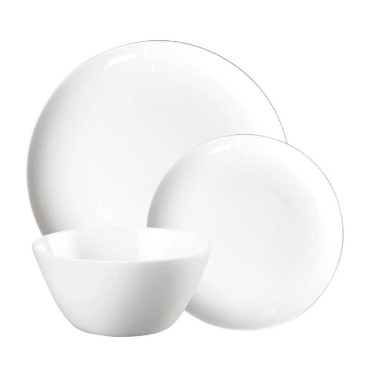 Make every meal a fine dining experience with the Alex Liddy Aquis Premium 12 Piece Dinner Set. Whether you are hosting a dinner party or setting the table for a family meal, the Alex Liddy Aquis Premium 12 Piece Dinner Set will add a touch of elegancy to any meal. Made from premium Fine Bone China, this set includes four dinner plates, four side plates and four bowls. This high-quality dinner set offers longevity as well as a stunning classic white colour. Inspired by fine Parisian dining, the Alex Liddy Aquis Premium 12 Piece Dinner Set intends to highlight the superior quality and the simple traditional style of the dinner set. It comes presented beautifully boxed and makes a delightful gift for housewarmings, birthdays, and other special occasions. For added convenience, the Alex Liddy Aquis Premium 12 Piece Dinner Set is dishwasher friendly. Features • Inspired by fine Parisian dining- A beautiful 12 Piece set made from premium Fine Bone China – Perfect to fit any aesthetic – A stunning classic white colour – Includes 4 x 27cm Dinner Plates, 4 x 19cm Side Plates, 4 x 15cm Bowls – Gift boxed for house warmings, weddings, anniversaries and more – Dishwasher Safe