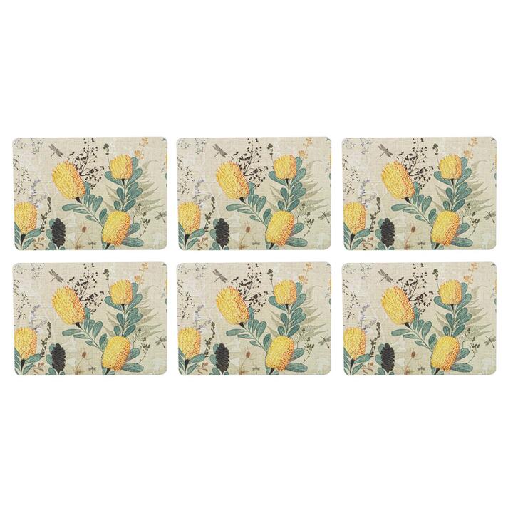 The Ashdene Golden Banksia collection features a stunning banksia flower in an ambient, joyful setting. The Golden Banksia Set of 6 Placemats were designed by artist Trudy Rice and blends the printmaking processes of solar plate etching and monotype to create her original artworks. Features• Artwork by Trudy Rice• Brings a natural beauty to your home• Perfect for gifting• Add a touch of warmth to your home MaterialsCorkDimensions30.2cm x 22.6cm x 3.6cm