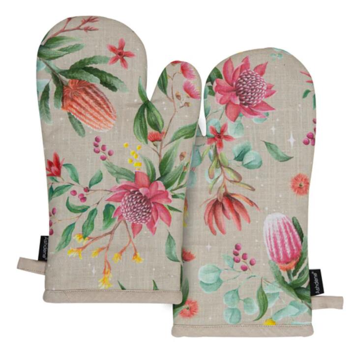 Celebrate Christmas with an Australian twist! The Ashdene Twinkling Blooms Set Of 2 Oven Mitts feature iconic native flora festive arrangements against a twinkling starry backdrop. These designs bring the beauty of Australia to the season, adding a touch of homegrown charm to your holiday celebrations. Features• Features iconic native flora styled into Christmas trees & festive shapes• Bring some colour to your Christmas set up• Perfect for holiday entertainingWhat Am I Buying2 x Oven MittsMaterialsCottonDimensions32.5cm x 18.5cm x 4cm