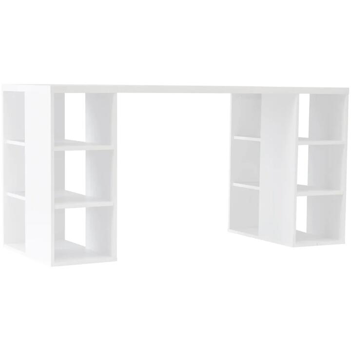 Product Description, Spacious desk with a good amount of storage to place plenty of office supplies and other items. The Atlas Study Writing Office Working Computer Desk Table is constructed with E1 Board which provides a solid well balanced build. It also has a Scratch Resistance MB Foil Lamination for a timeless scratch free look. Six shelves give plenty of space for your office items with enough room for more. Its shelves also support the structure and keeps it well balanced. Modern and stylish its is perfect to be blended with many different styles and aesthetics. Features, Desk with Shelves, Total of 6 open storage shelves, E1 Board Construction, Full Edging 0.6mm Thickness, Scratch Resistance MB Foil Lamination, Top Panel is 30mm Honeycomb, All other panels 15mm Particle Board, Dimensions, Overall Dimensions:, Width: 150cm, Depth: 59cm, Height: 74cm, Internal Cube Dimensions:, Width: 26.8cm, Depth: 57cm, Height: 22cm, Leg Area Internal Dimensions:, Width: 90cm, Depth: 57cm, Height: 22cm, Colour: White Package Contents, 1 x Desk with Shelves (with parts included for assembly), 1 x Users Guide , Please note: During the assembly process it is normal to see a small amount of chipping internally. This in no way affects the integrity of the fully assembled product. Note:- Actual product colours may vary due to lighting, studio photography, room conditions, different screens on various devices. – All our furniture product are flat pack (assembly required) for safe handling purposes.